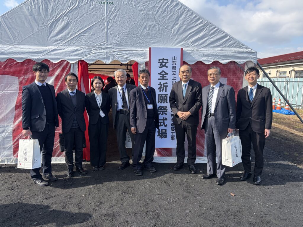 山形県立上山高等養護学校校舎改築工事の起工式を行いました。 2月13日に山形県立上山高等養護学校校舎改築工事の起工式が行われ、本格的に始まる工事の安全を祈願してきました。 この事業では、上山高等養護学校と山形盲学校の校舎を併設し、2校間の交流や地域との連携を深める共有エリアの整備を段階的に行っていきます。設計段階から株式会社安井建築設計事務所と協働で業務を進めてきました。 学生の学びを支える建築の実現に向けて、RC+W造2階建て校舎(ロ-1準耐火建築物)を含むあわせて4,000㎡程度の施設群の工事監理業務に取り組んでいきます。 admin-archi-suzuki2026-02-17T14:03:08+09:002026年2月13日|